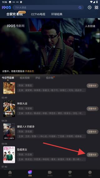 3、在今日节目单中,向上滑动的找到可回看的电影内容,点击即可回看。
