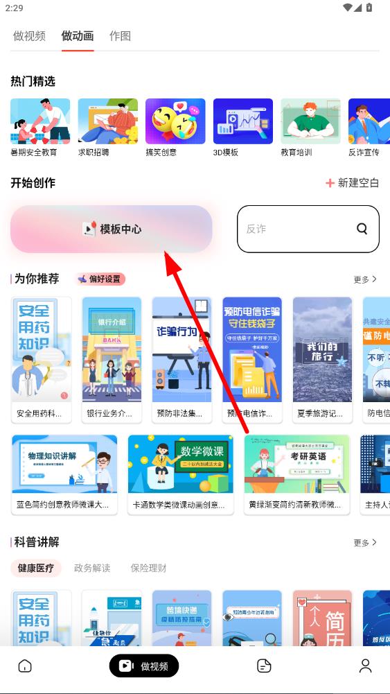1、打开来画app,点击底部导航栏中的做视频选项。