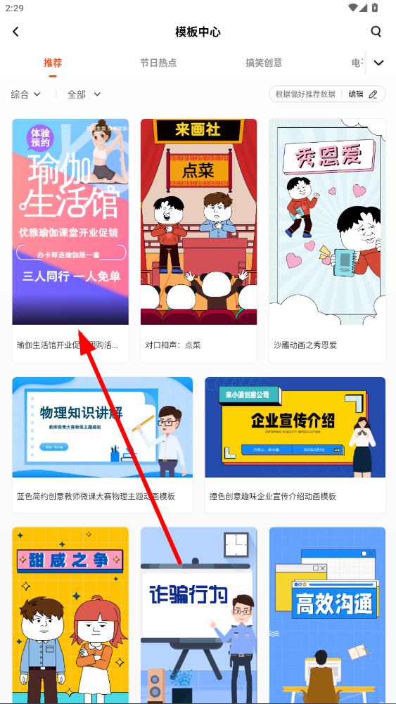 3、在模板中心页面,浏览并选择你需要的模板,点击该模板进入模板预览页面。