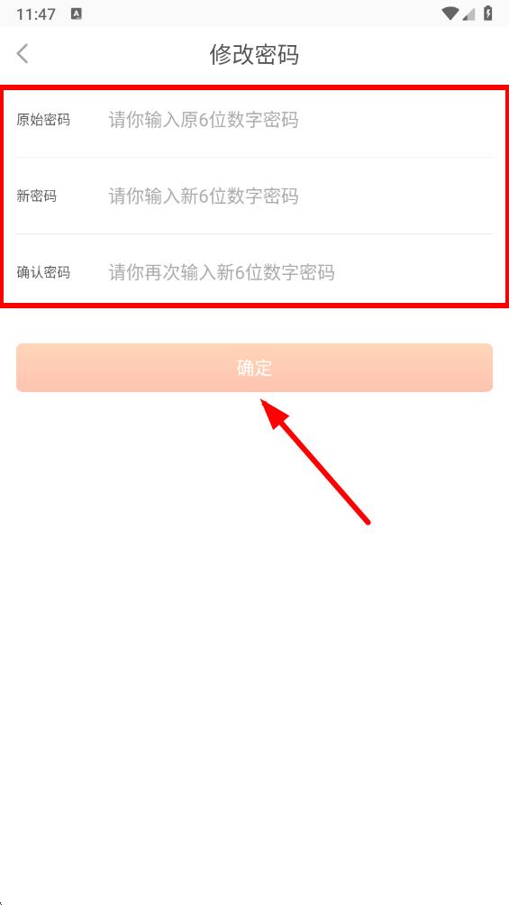 4、在修改密码页面,依次输入原始密码、新密码、确认新密码,然后点击确定按钮,即可成功修改密码。