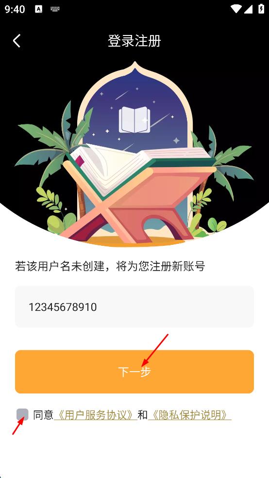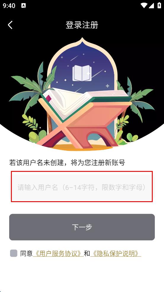4、完成用户名输入和协议勾选后,点击“下一步”按钮,继续后续的登录注册流程,逐步完成账号的登录或注册操作。