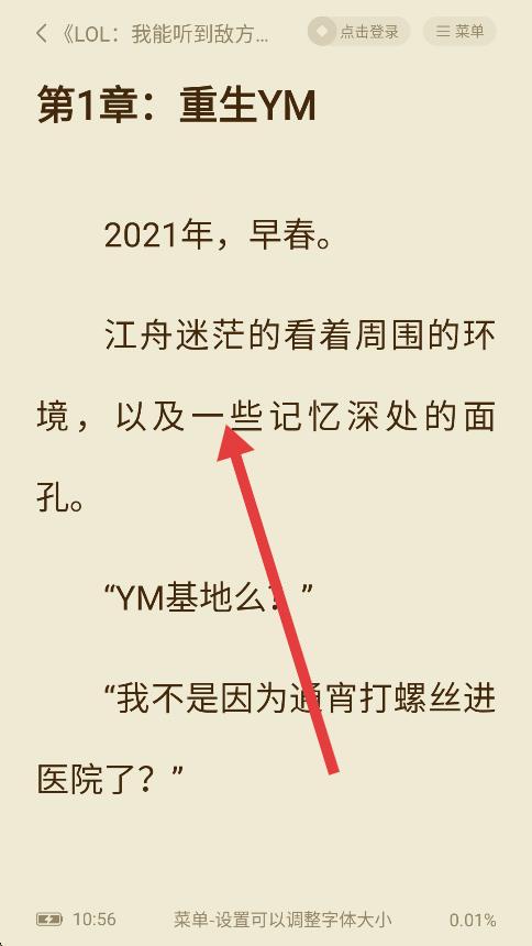 2、在小说阅读界面,点击屏幕中间位置,唤出隐藏功能栏。