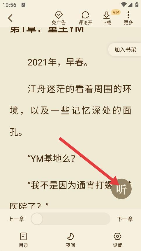 1、打开app,选择需要听的小说,点击进入阅读界面。