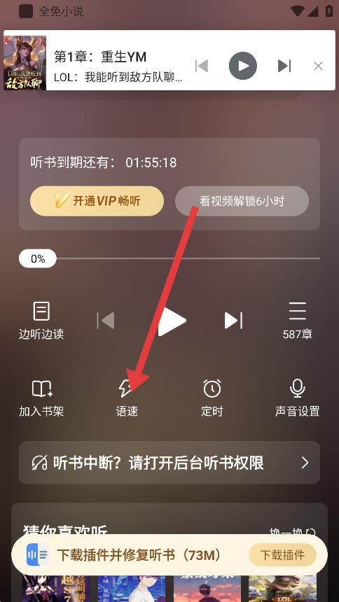 3、在功能栏里,找到并点击听书按钮,进入听书模式。