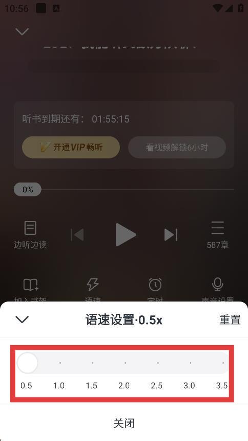 5、可拖动进度条或点击对应倍数,即可调节语速。