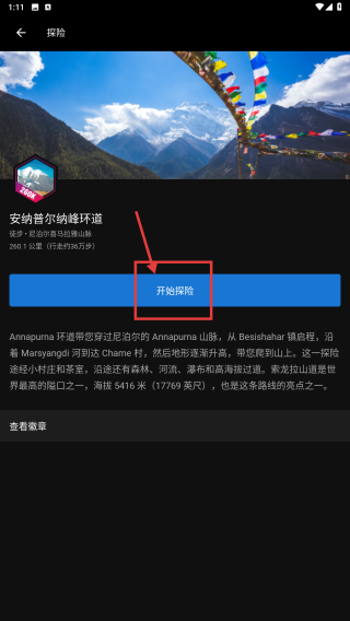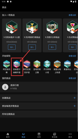 2、在挑战页面,找到安纳普尔纳峰环道探险挑战条目,点击进入详情页。