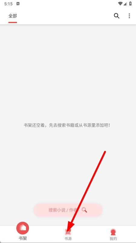 1、打开黑猫小说APP,点击底部书源。