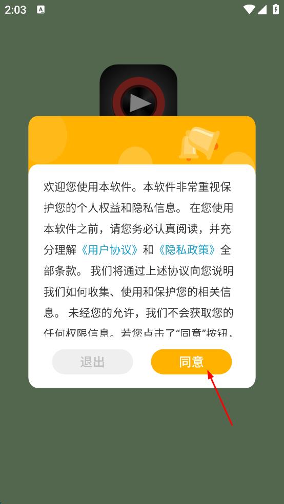 1、打开视频类软件,弹出用户协议和隐私政策提示,仔细阅读后点击“同意”,进入软件主界面。