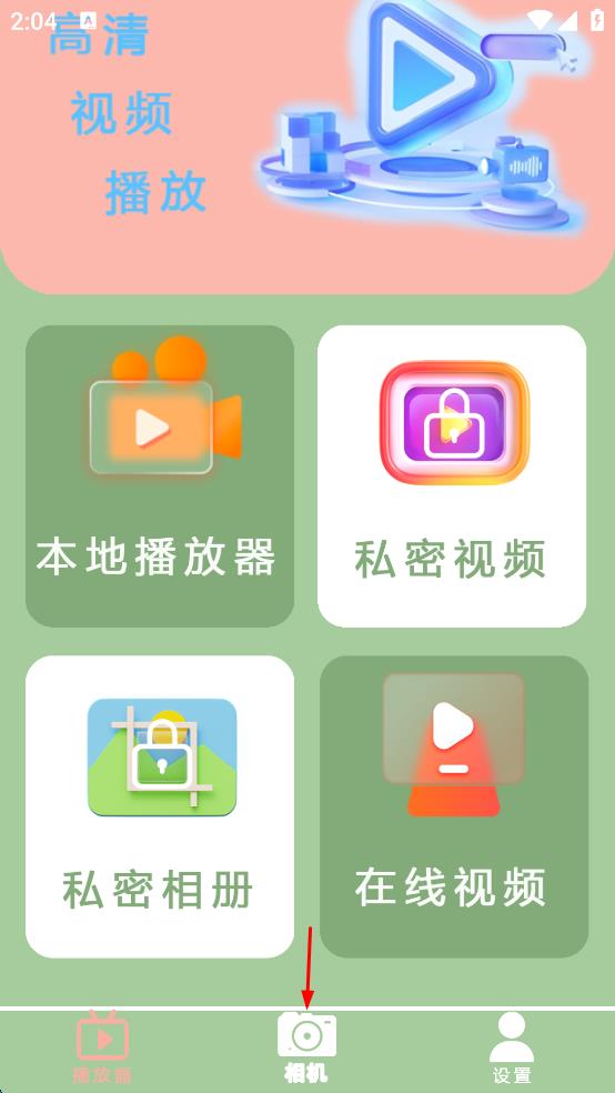 2、在软件主界面,点击底部“相机”选项,进入相机功能页面。