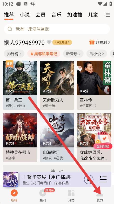 1、打开懒人畅听,点击底部导航栏中的我的选项。