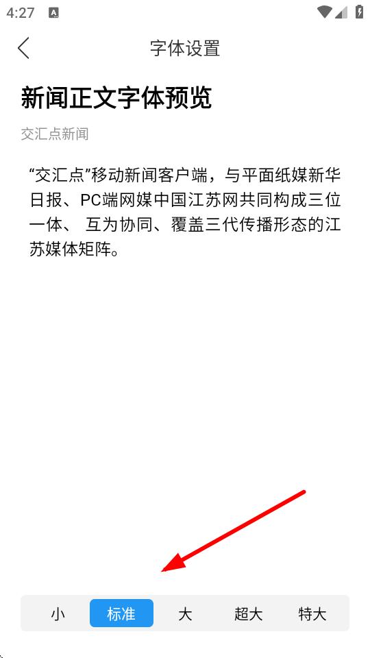 4、在字体设置的页面,选择需要的字号,完成字体大小设置。
