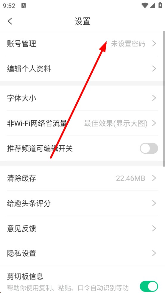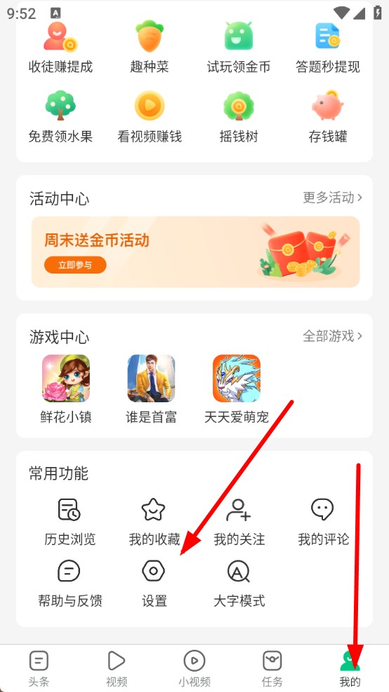 1、打开趣头条APP,进入我的个人页面,点击设置。
