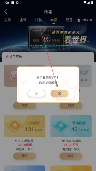 4、在弹出的是否要购买VIP确认框中,点击是,即可完成会员开通操作。