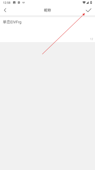 4、在昵称编辑页面的输入框中,删除原有昵称并输入新昵称,输入完成后点击右上角的√。