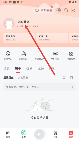 1、在进入到我的页面中,可以点击上方立即登录按钮,进行登录操作。