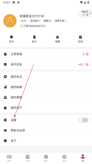 1、打开IT之家APP,进入个人页面后,点击设置选项。