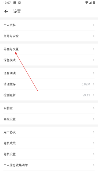 2、在设置页面中,点击界面与交互选项。
