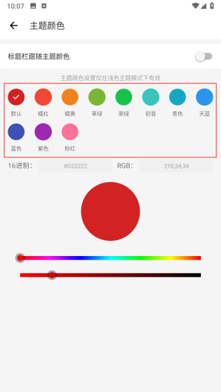 4、在主题颜色界面,选择自己喜欢的颜色,即可完成IT之家APP主题颜色的设置。