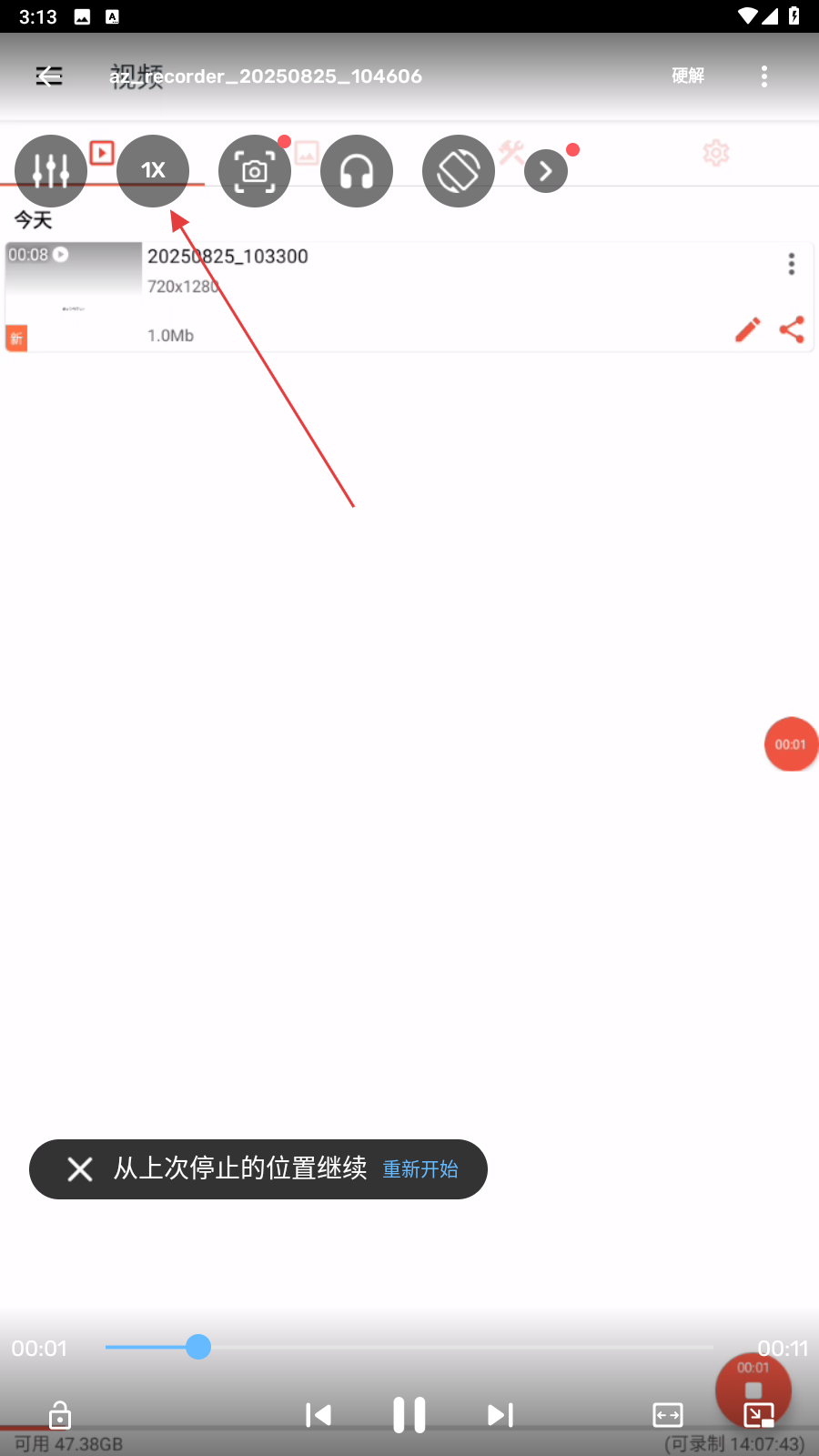 3、进入到播放的页面内,点击上方1x的功能按钮。