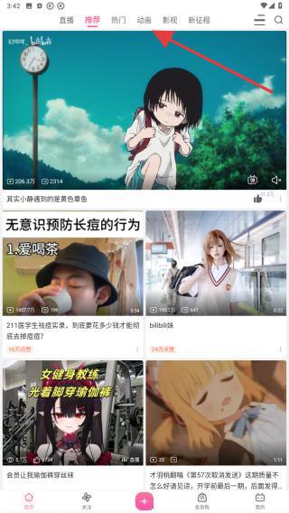 1、打开哔哩哔哩app,通过顶部导航栏找到并点击动画的标签。