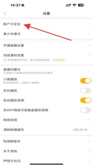 3、进入设置的页面内,点击账户与安全的功能按钮。