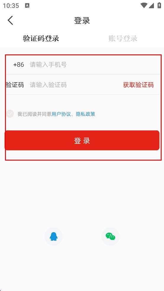 4、在登录页面选择“验证码登录”,输入手机号,点击“获取验证码”,输入收到的验证码后点击“登录”。