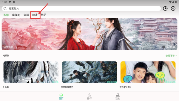 1、打开影视类应用,点击动漫分类选项,进入动漫分类页面。