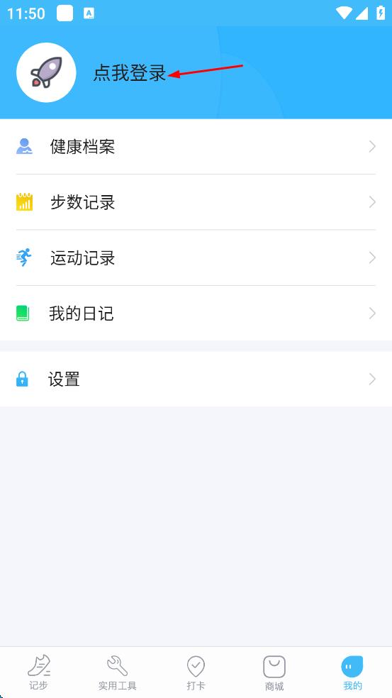 3、在个人中心页面,点击“点我登录”,进入密码登录页面。