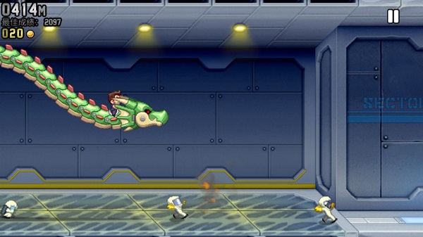 疯狂喷气机ios版是一款非常经典的休闲跑酷手游,英文名为Jetpack Joyride,游戏在画质方面跟现在游戏相比也不相上下,在游戏中玩家需要扮演游戏的主人公(Barry)秘密的潜入一座神秘的基地,夺走邪恶的科学家研制的超级火箭飞行器,接着利用这个飞行器进行极限逃生。