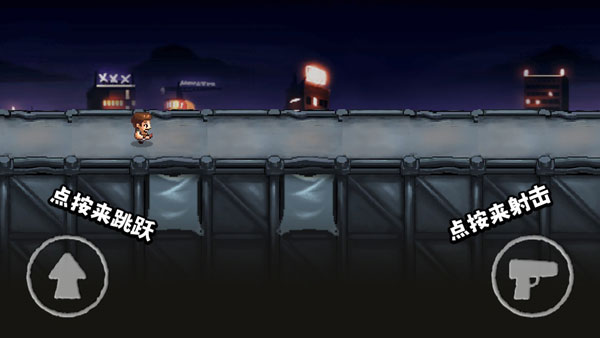 左手控制人物的上下左右移动,欢乐的向前跳跃,右手则是攻击键,不停的发射子弹奋勇杀敌。