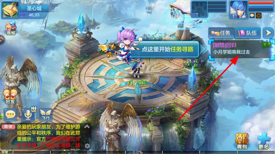 2、在游戏场景中,跟随主线任务指引,比如小月学姐唤我过去等剧情任务,推进任务进程,探索游戏世界。