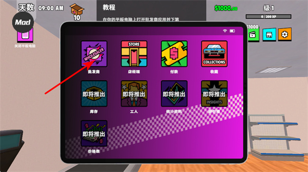 2、点击平板上的批发商图标,进入批发商界面,在此可采购商品,为店铺备货提供了资源的支持。