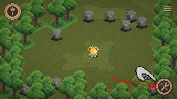 2、点击右下角工具图标,可使用工具进行如挖掘石头等操作,获取建筑或升级所需的材料。