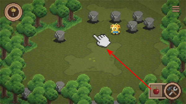 3、点击界面中的手势指引区域,可移动角色到指定位置,同时可利用苹果图标恢复角色状态。