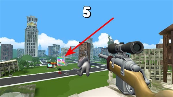 3、在狙击关卡中,使用狙击枪瞄准远处彩色目标物,击中后获取分数,留意目标位置并调整射击角度提升命中率。