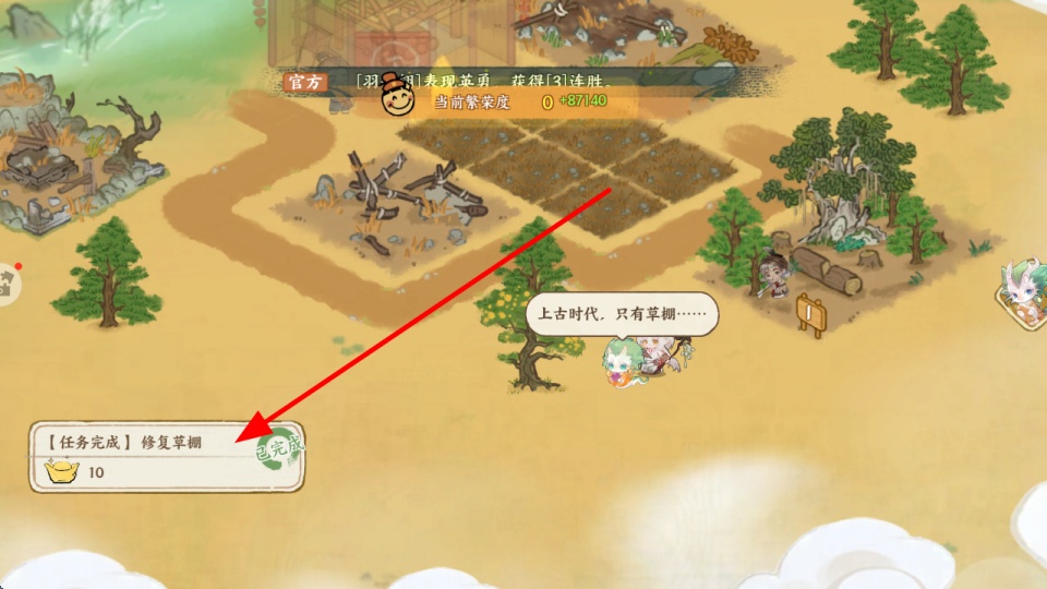 4、最后根据任务要求,完成修复草棚等任务,任务完成后能获取奖励,助力自身之后在游戏中的发展与建设。
