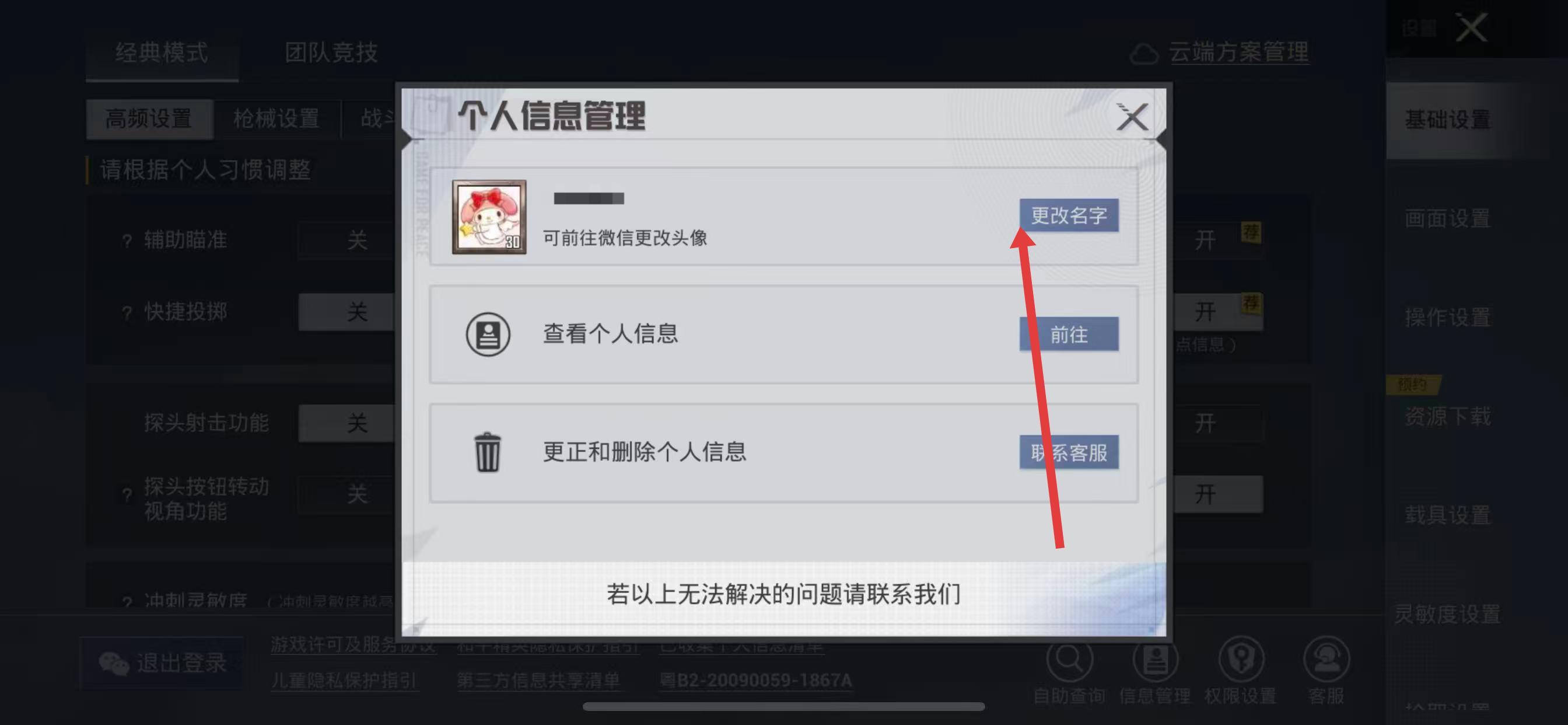 4、在个人信息管理窗口中,点击更改名字按钮,弹出更改名字界面。
