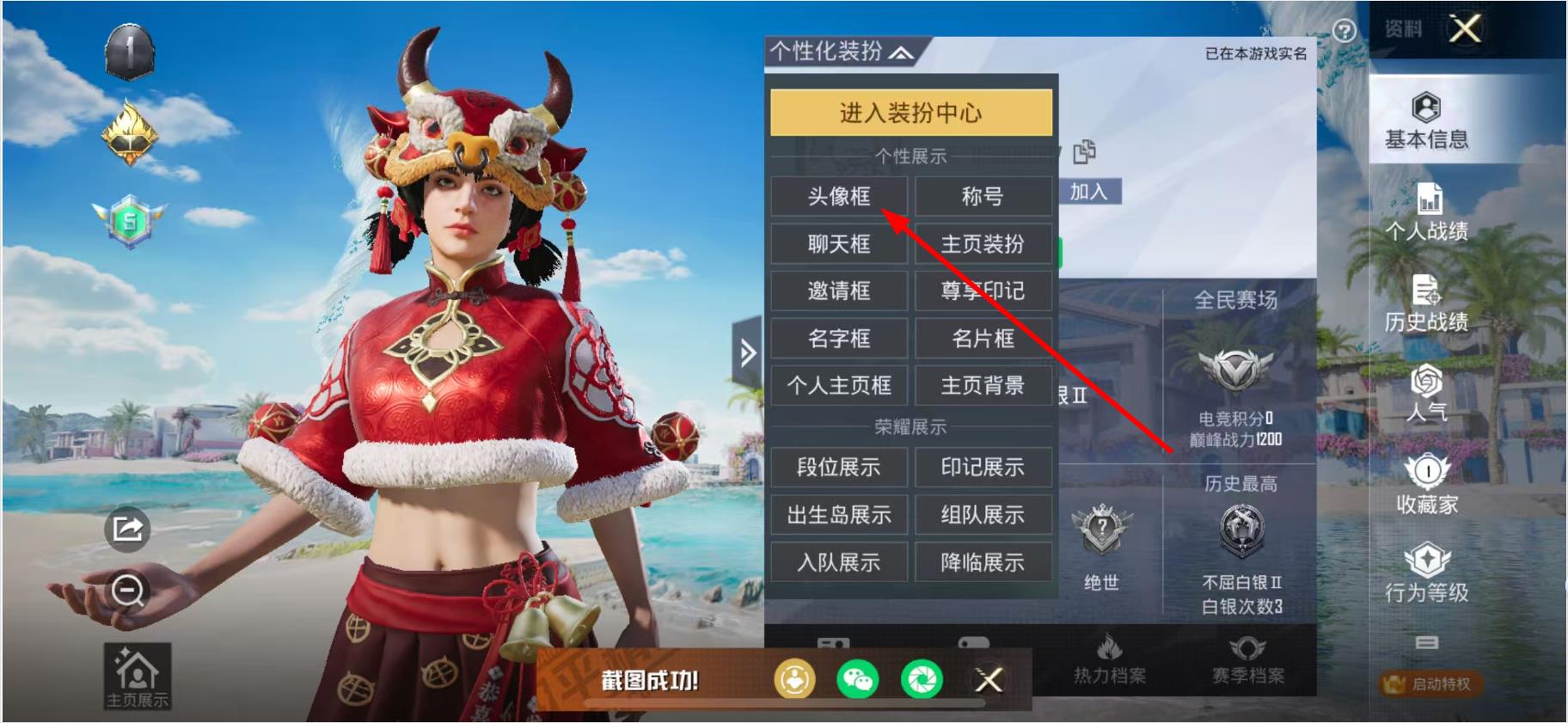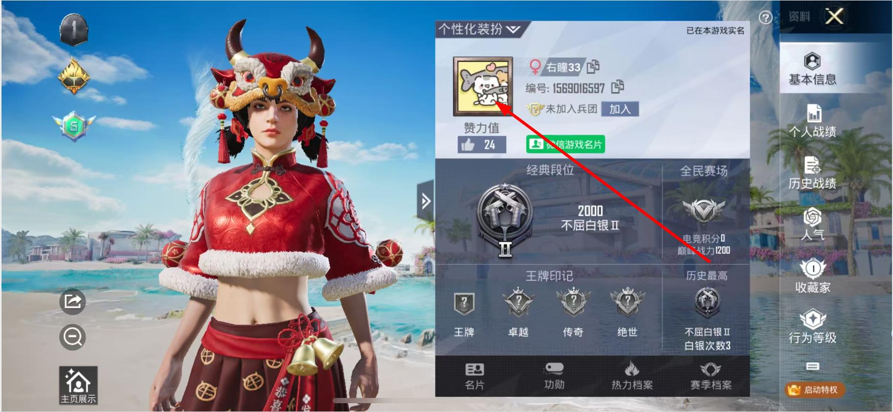 1、在游戏资料界面点击个性化装扮的头像区域。