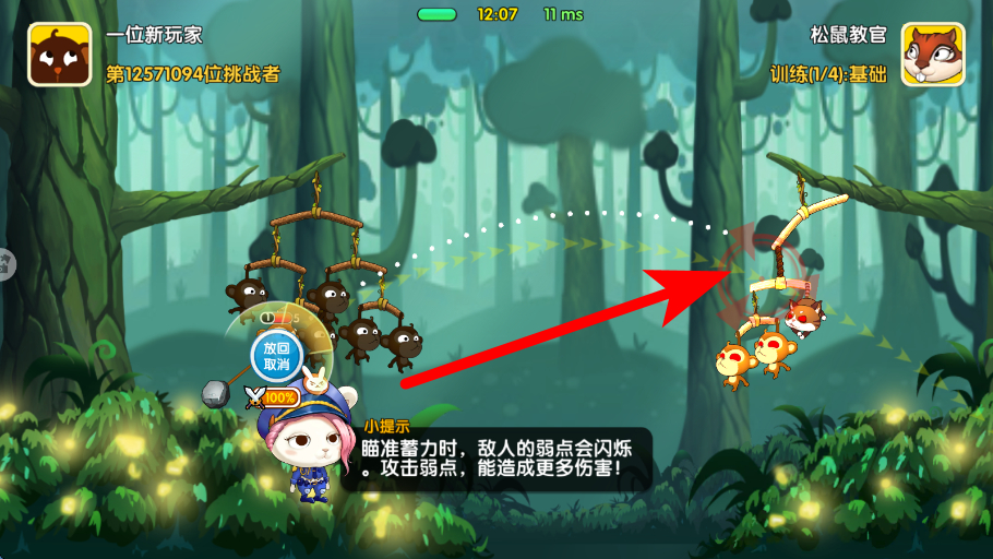 3、简单操作进行攻击要在瞄准好敌人弱点后,释放攻击,让攻击命中敌人,推进对战进程,尝试击败对手,取得对战的胜利。