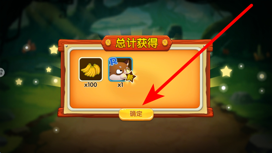 4、获取奖励后,在总计获得界面,查看获得的物品,然后点击确定,确认奖励的获取,感受游玩带来的成就感,继续后续的游玩。