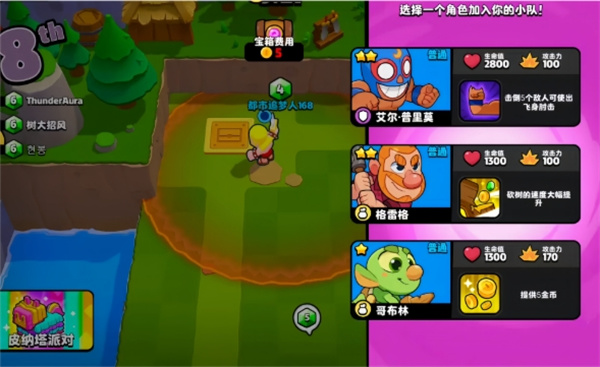 2、在地图中通过打怪/采集资源/可以获得金币和宝石,获得的金币可以开启宝箱,再从宝箱三个角色中选择其中一个适合自己的角色加入来壮大自己的队伍;
