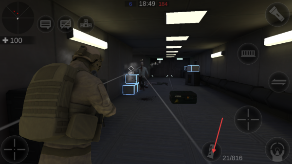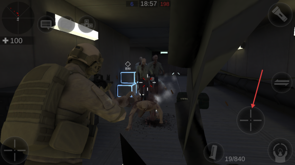 2、遭遇僵尸时,利用右侧瞄准按钮精确瞄准,再点击射击按钮攻击,同时注意弹药数量显示,避免弹药耗尽。