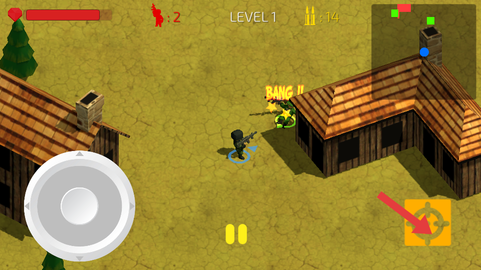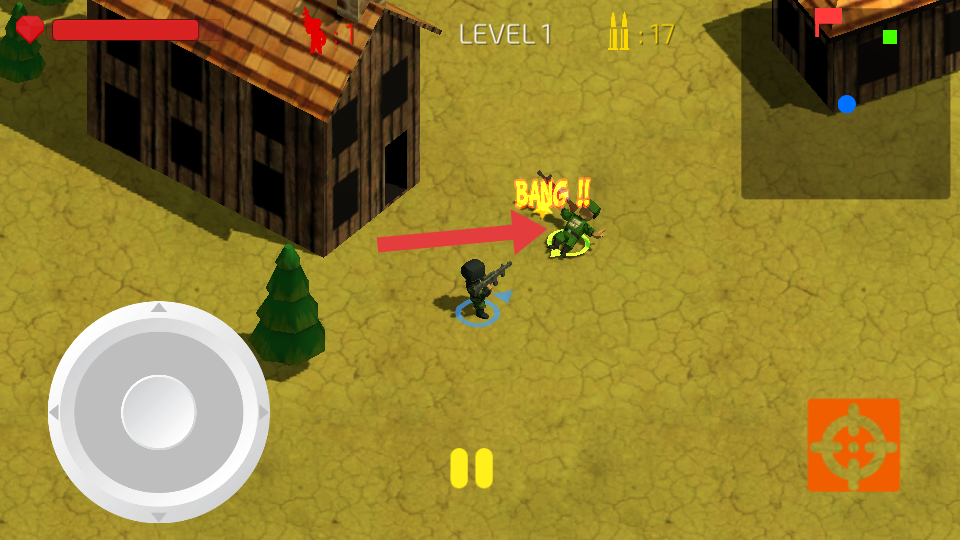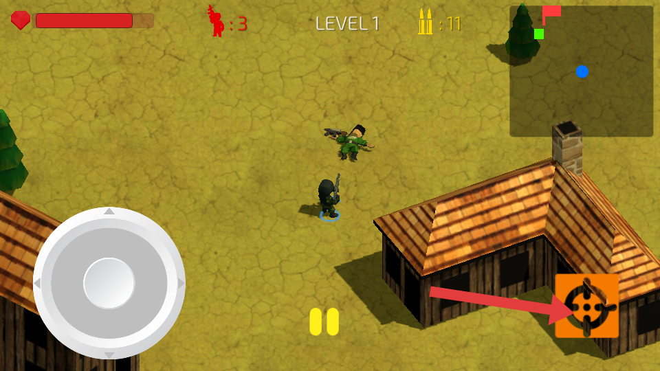 2、在LEVEL1的木屋与树木场景中,移动时尽量借助木屋遮挡身形,减少被敌人发现的概率,观察到敌人后再起身精准射击。