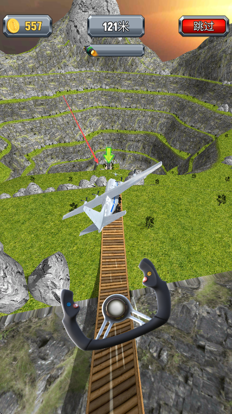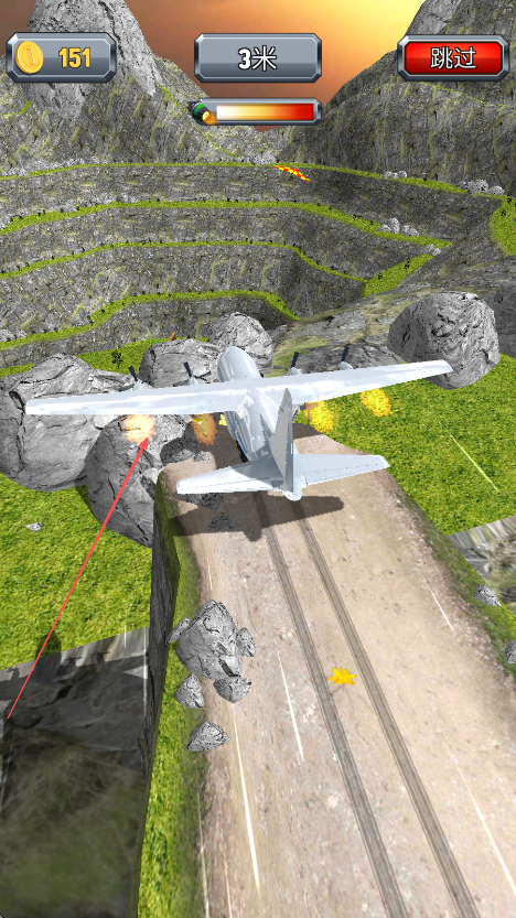 3、尽量平稳地让飞机着陆,避免碰撞障碍物导致飞机坠毁,成功着陆后,可获取金币奖励。