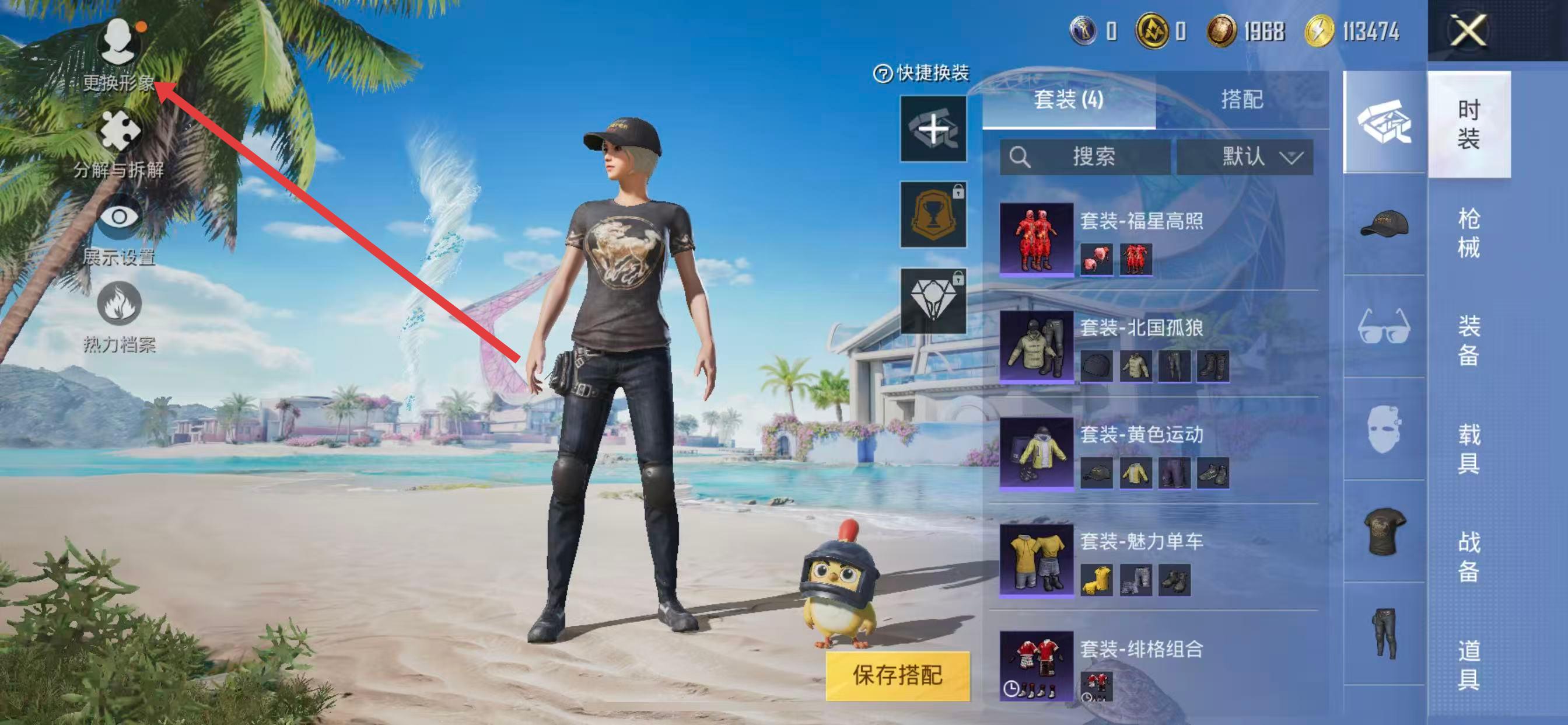 2、在仓库界面中,点击左上角的更换形象按钮。