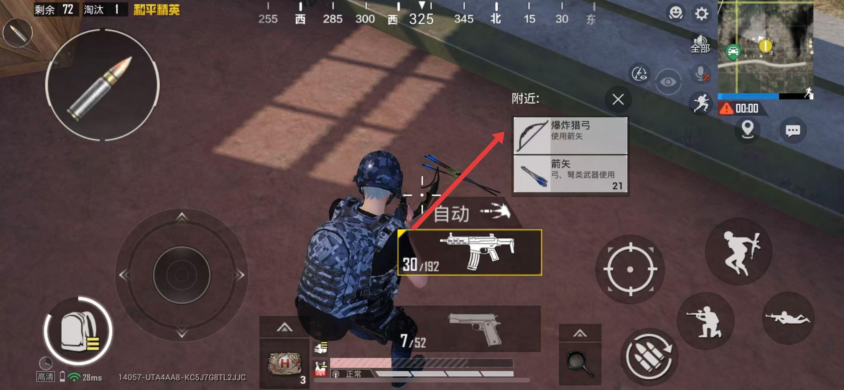 1、在游戏对局里,通过搜索房屋,获取爆炸猎弓及箭矢。
