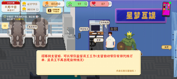 4:办公室主管为流浪汉叶修,可在网吧招揽(效果为代练自动接最高价单;主播直播时不会偷懒)