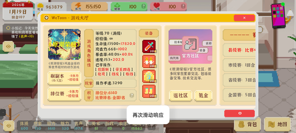 这个版本主要是上线游戏线相关内容,新添了一个完整的游戏系统,模拟了一个人从身无分文一步一步追逐自己的梦想,成为职业选手,拿下全国第一的过程。