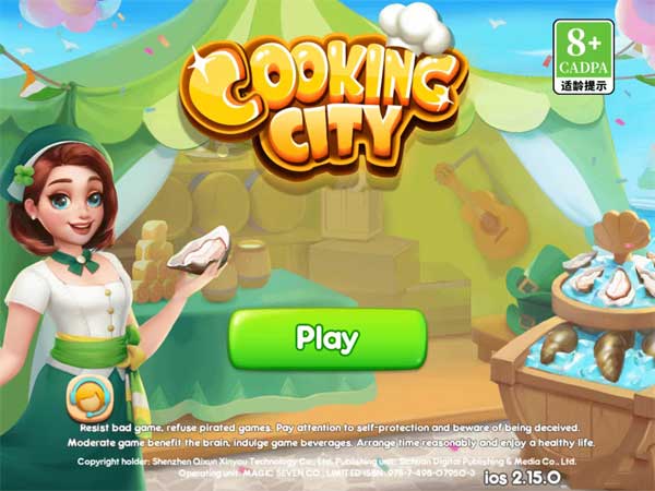 1、从本站获得小镇大厨苹果版下载链接之后,安装到苹果手机并打开游戏,点击中间的Play按钮。