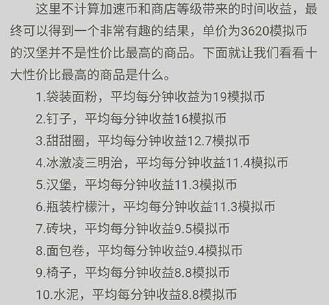 商业建筑可以生产制造许多东西,除非升级后解锁新商品,否则不值得升级。这里有个个商品的性价比【价值/制造商品所需要的时间(包括商业建筑生产的原材料)】。